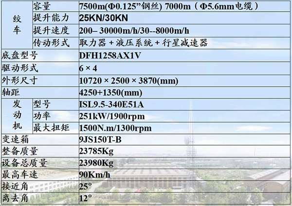 ★底盤:采用東風(fēng)汽車有限公司生產(chǎn)的DFH1258AX1V二類底盤,6*4驅(qū)動(dòng),安裝可翻轉(zhuǎn)寬敞、舒適型駕駛室, 發(fā)動(dòng)機(jī)采用東風(fēng)康明斯ISL9.5-340E51A柴油發(fā)動(dòng)機(jī),功率251KW,國V排放標(biāo)準(zhǔn);變速器采用法士特9JS150T-B型,性能優(yōu)越。該車型是目前國內(nèi)各油田三合一測(cè)井作業(yè)設(shè)備的佳選擇。